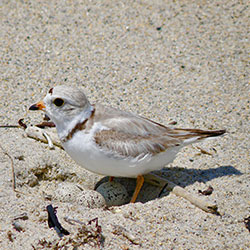 Piping Plovers (Charadrius melodus), a federally threatened species, occur at Napatree from March to September. This small shorebird nests in shallow depressions in the sand, where they typically incubate four eggs for about one month. Mortality of eggs and nestlings can be very high, primarily due to predators or flooding during extreme storm tides.