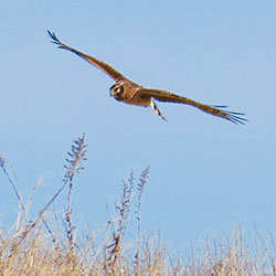 Northern Harriers (Circus cyaneus), sometimes called Marsh Hawks, are migrants that tend to use Napatree during migration and the winter months. They fly back and forth over the dunes in search of mice and voles moving through the dune grass. Their owl-like face is an adaption to increase their hearing capabilities so they can listen for mice moving through the grass.